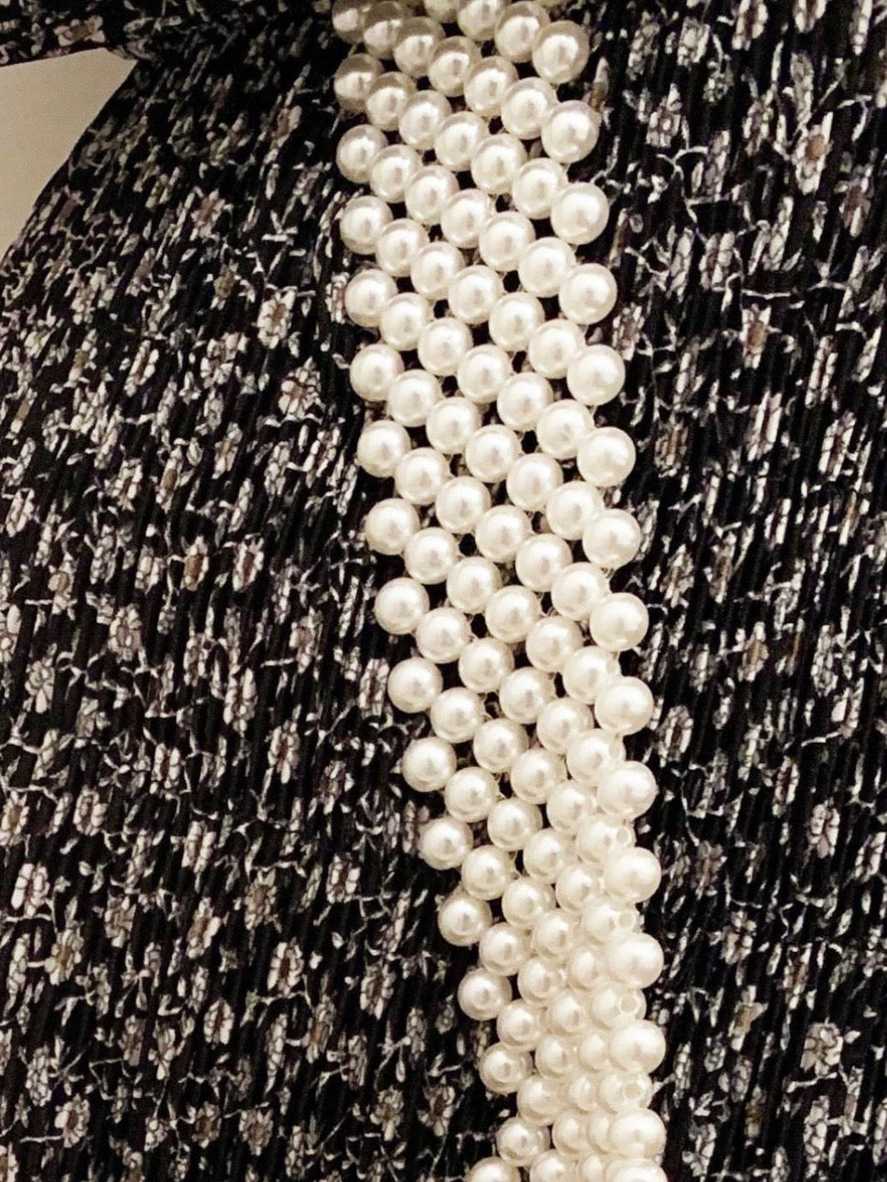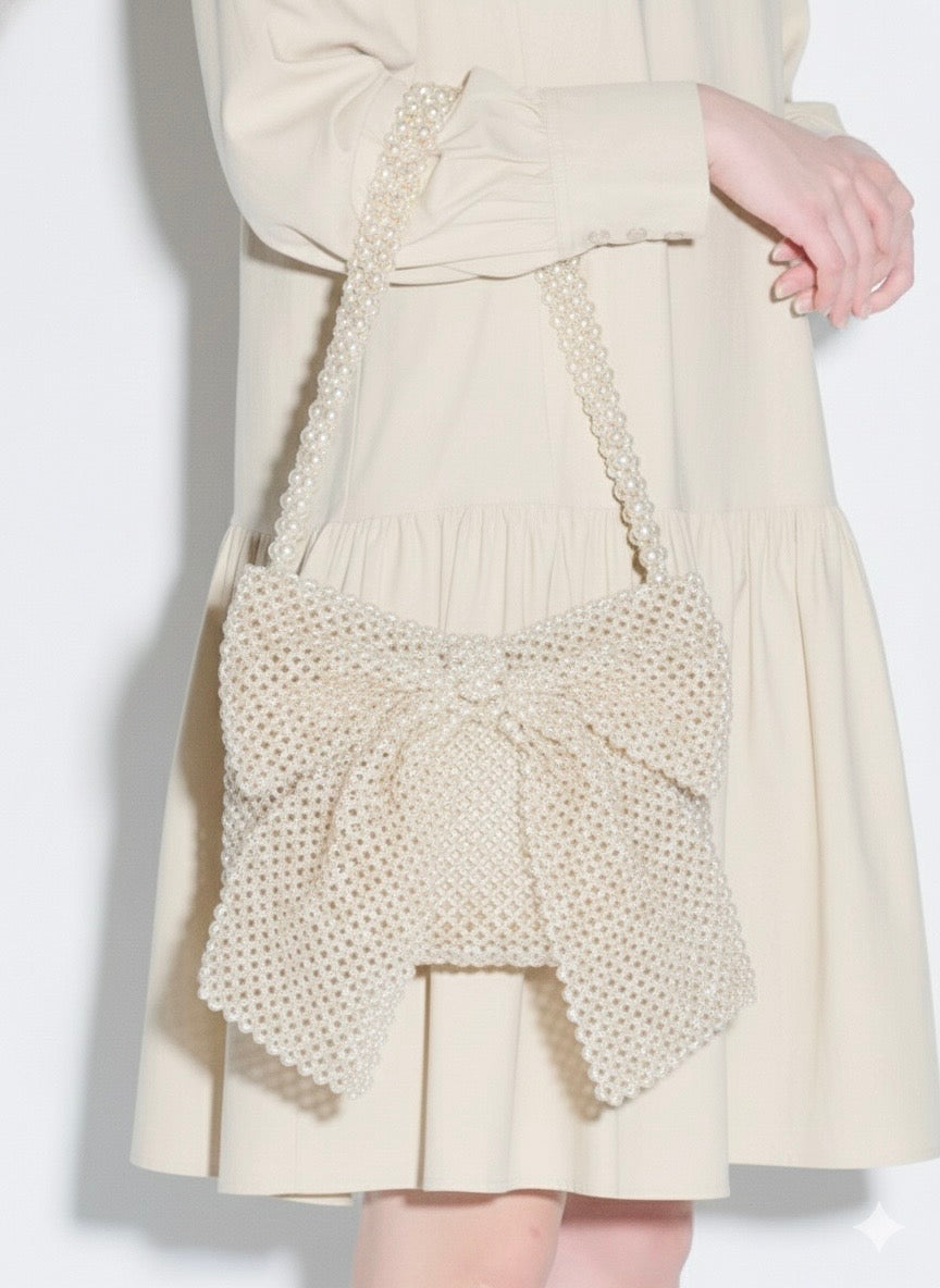 贅沢にあしらわれたパールと、優雅に広がるリボンモチーフが印象的なデザインです。